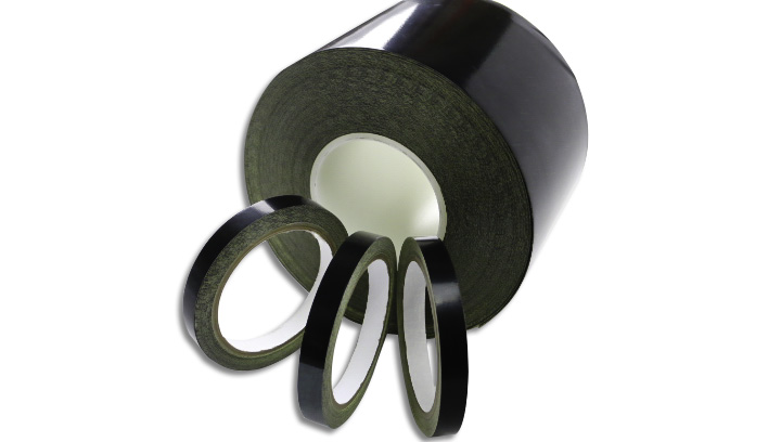 Black, Anti-static PTFE coated fiberglass tape with silicone adhesive is anti-static and semi-conductive, with superior durability and strength to wear, tear, cut through, breaking and flow under heat and pressure.